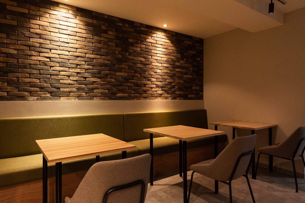 一部の壁には、北海道の歴史をイメージした本物のレンガを、職人さんに1枚1枚手間をかけて張っていただきました。